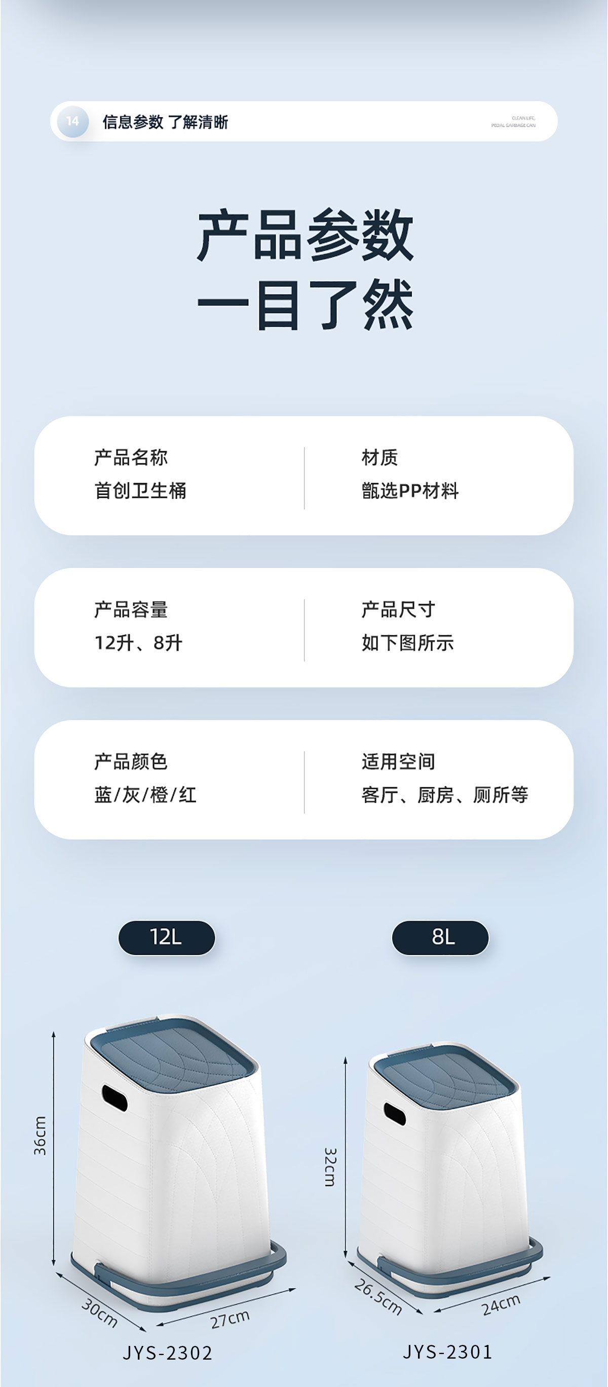 首創(chuàng)衛(wèi)生桶(中號(hào)12升/小號(hào)8升)