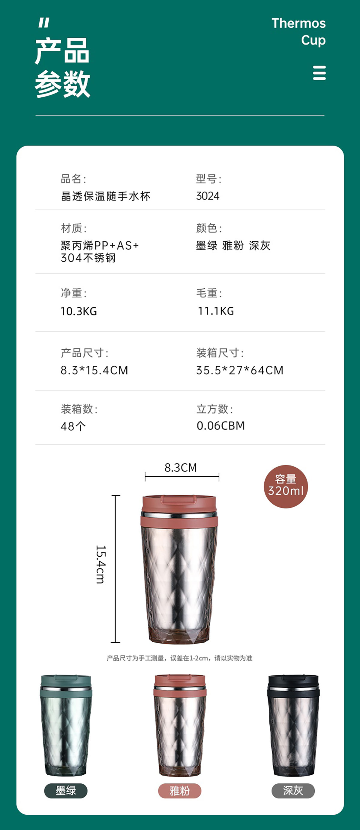 Size: 83*154mm/320ml