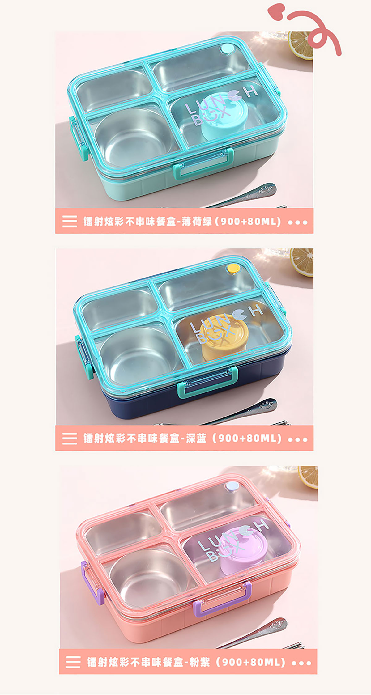 AQX-2622:262*193*65mm/不銹鋼4格900ml+醬料杯80ml