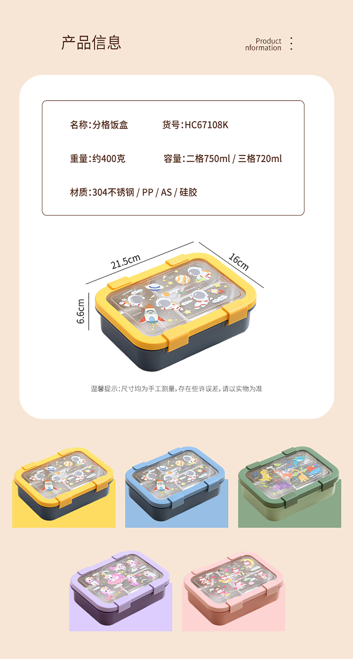 卡通不銹鋼飯盒二格/三格款