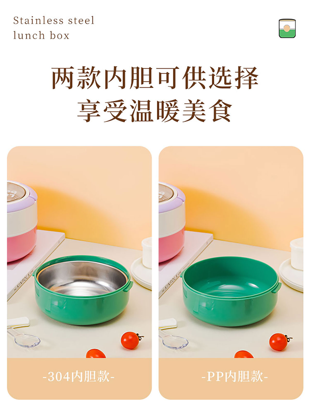 圓形疊趣雙格不銹鋼款/PP款餐盒