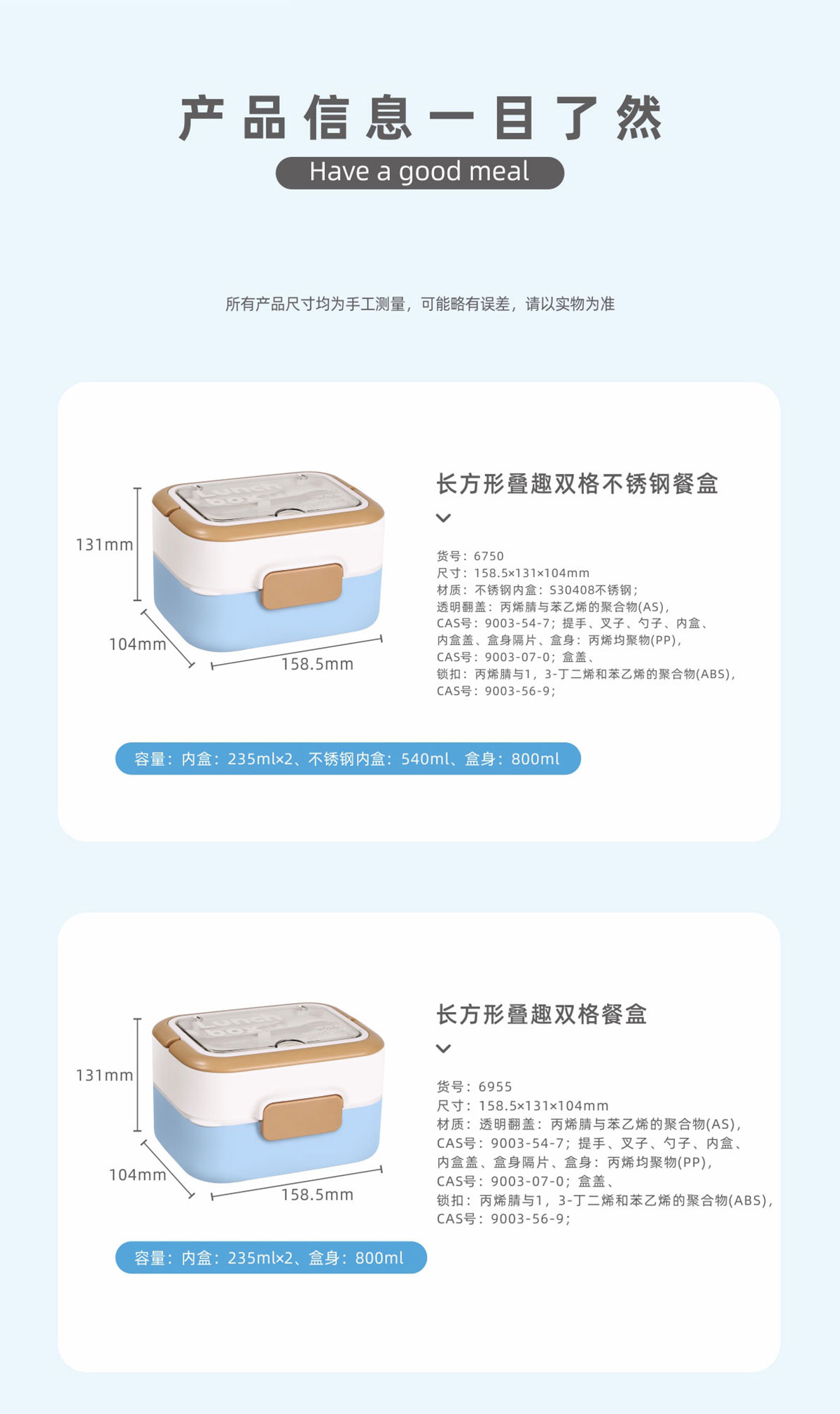 HM-6750(不銹鋼款):159*131*104mm/不銹鋼:540ml/盒身:800ml/內(nèi)盒:235*2ml