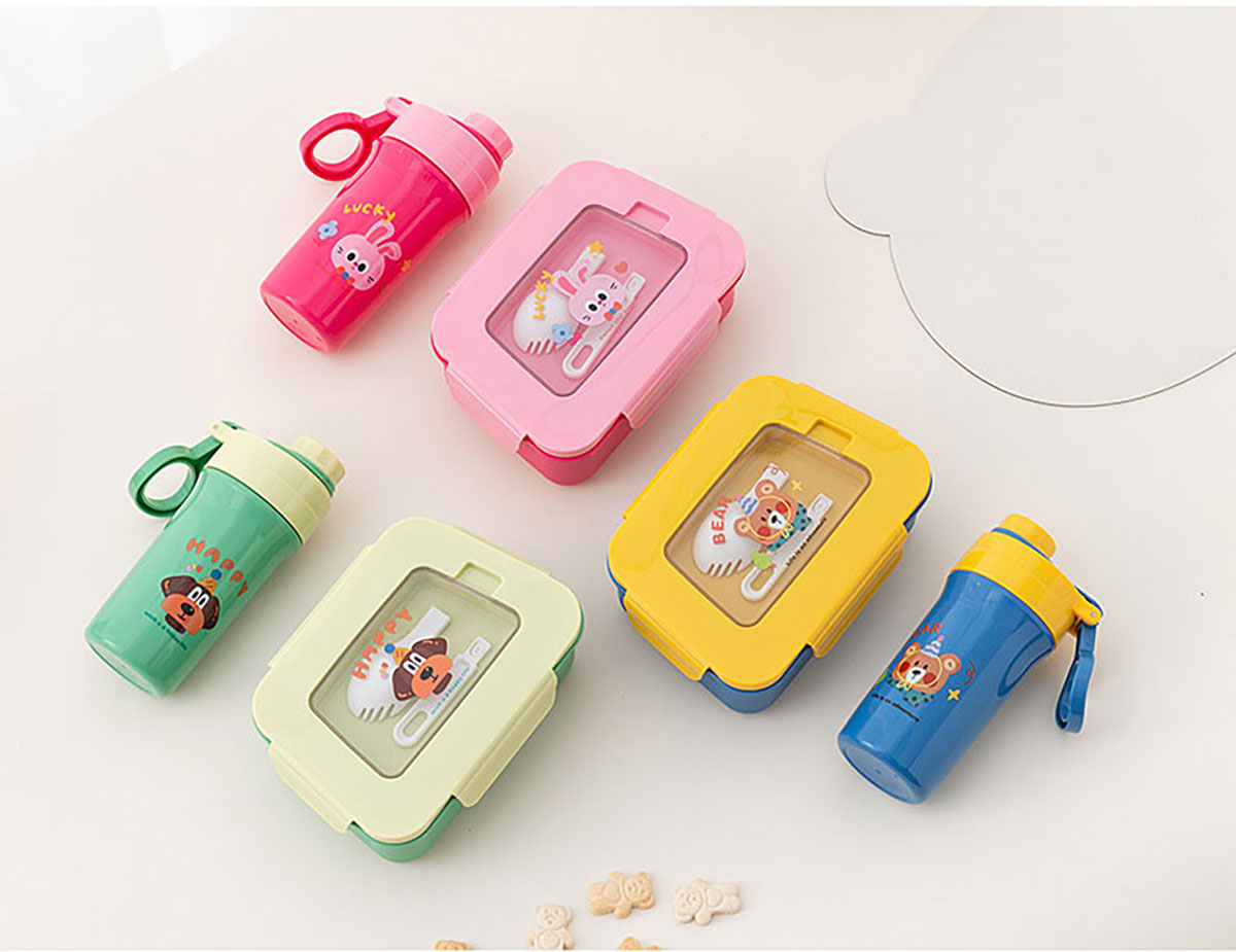 卡通三分格小飯盒/手提運(yùn)動(dòng)水壺/飯盒水壺套裝