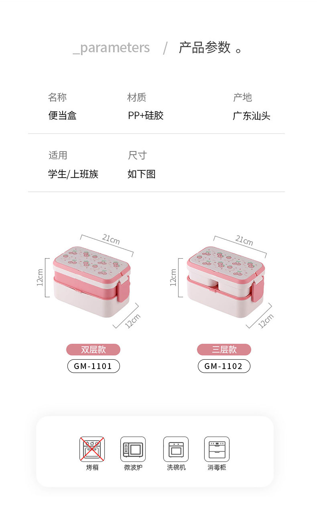 Size: GM-1101:210*120*120mm/1200+760ml GM-1102:210*120*120mm/1200+290×2ml