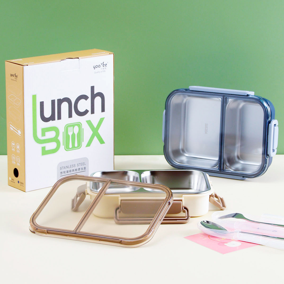 飯盒:225*166*55mm/700ml 叉勺盒:197*52*29mm