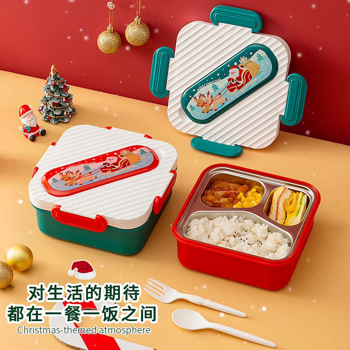 圣誕方形不銹鋼飯盒