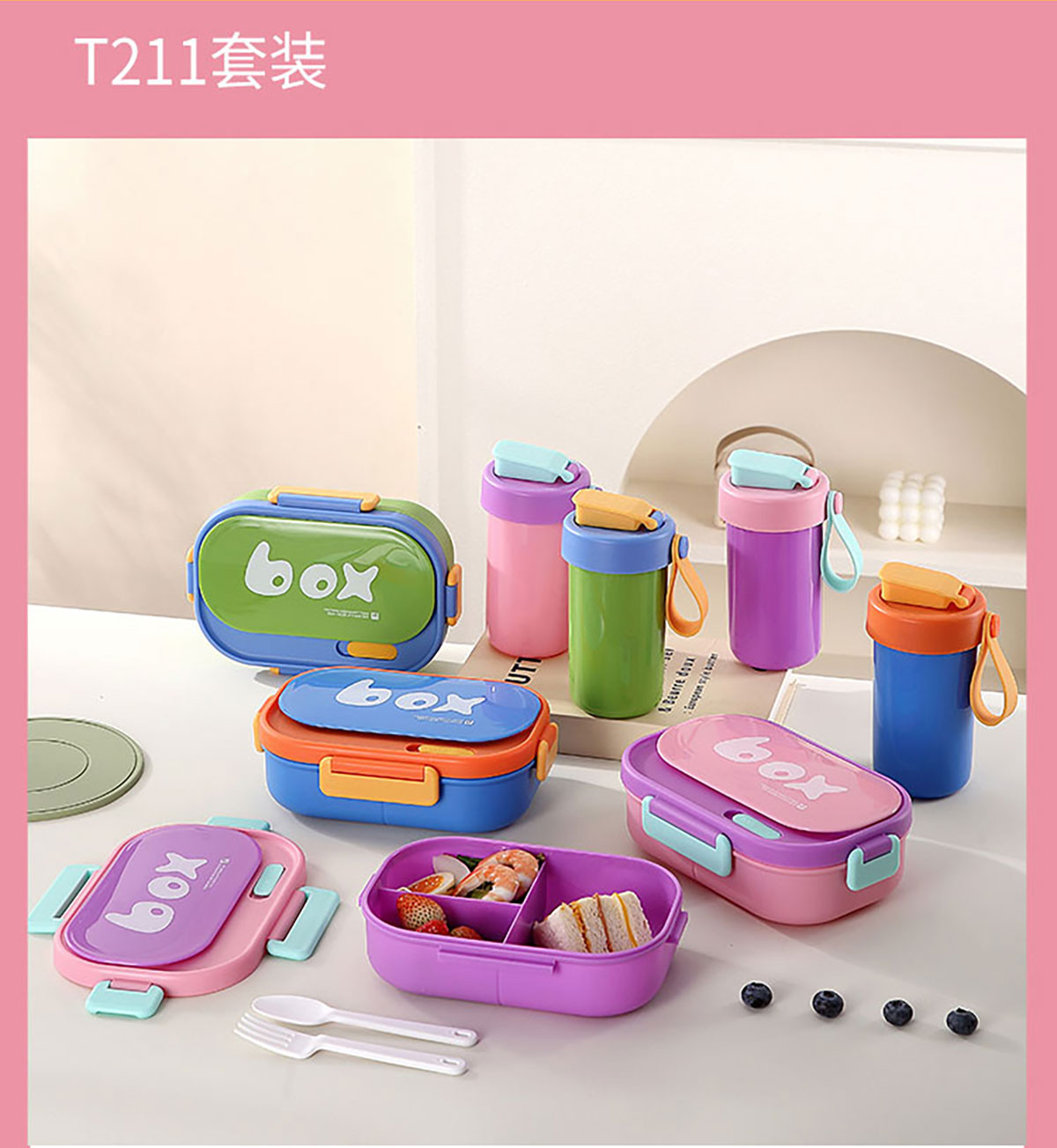 SWY-T211(水杯套裝):飯盒:215*149*69mm/1000ml 水杯:直徑82*高161mm/480ml