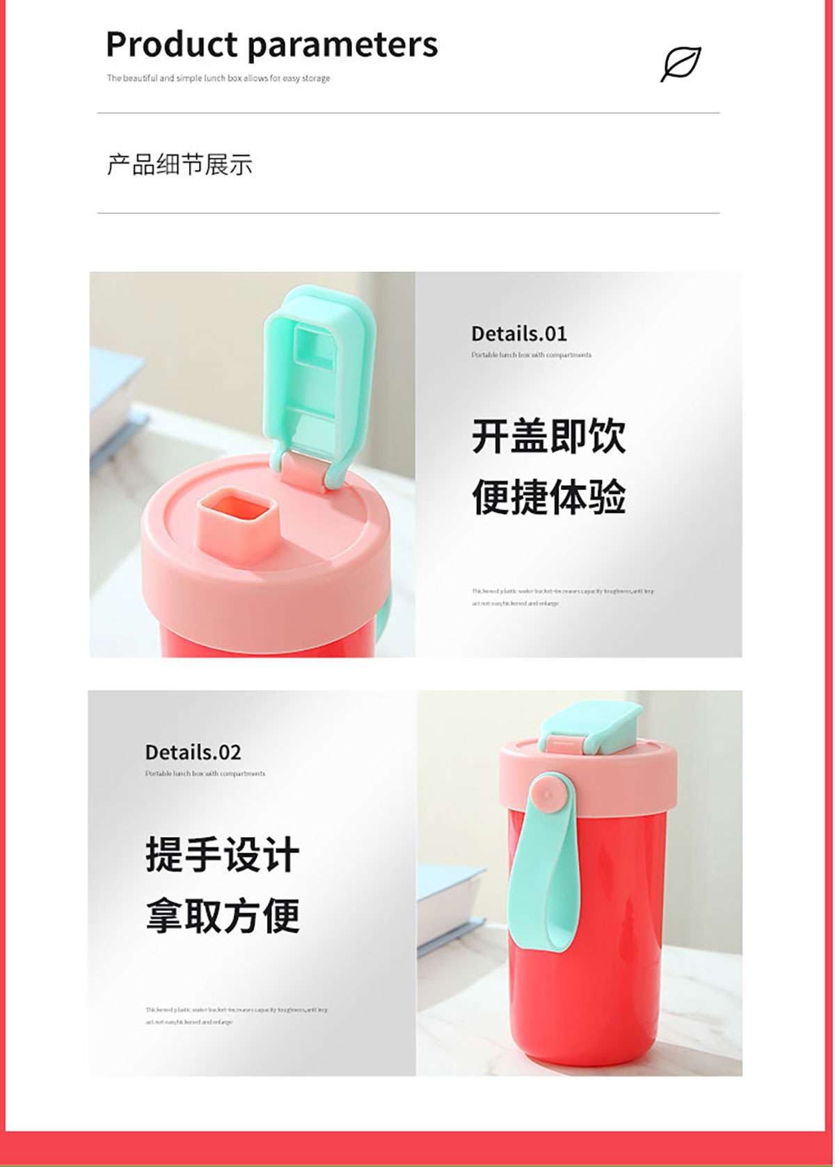 SWY-T207(套裝款):飯盒:215*149*71mm/1000ml 水壺:直徑82*高161mm/480ml