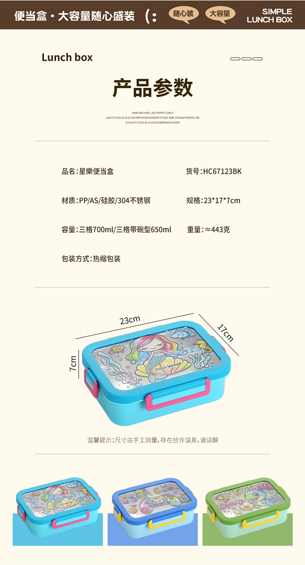 Size: 230*170*70mm(三格700ml/三格帶碗650ml)